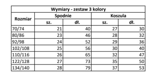 | Rozmiar | 80/86, 92/98, 102/108, 122/128, 132/138 |