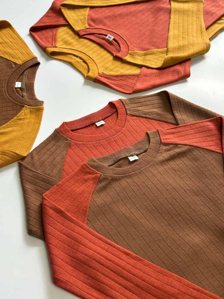 BLUZKA BRĄZOWO-CZERWONA 3 KOLORY