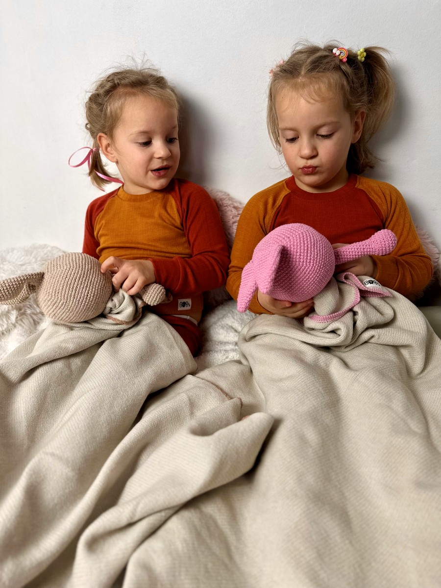UWAGA! Króliczek na kocyku wykonany jest w 100% z bawełny 🐰— idealny dla ząbkujących maluszków, które uwielbiają wkładać wszystko do buzi. Do każdego kocyka dołączamy słodki gryzak w kształcie kwiatka lub króliczka 🌸🐰.