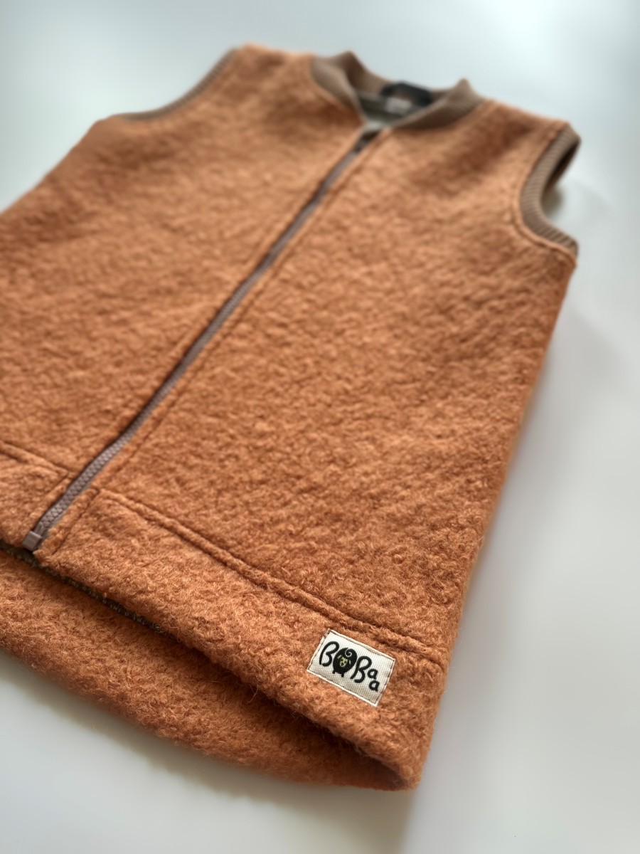 Warstwa zewnętrzna: Wykonana z parzonej wełny o gramaturze 420 g/m². Ten rodzaj wełny charakteryzuje się gęstym splotem, który zapewnia doskonałą izolację od zimna i wiatru. Dodatkowo, parzenie wełny nadaje jej większą odporność na mechacenie i pilingowanie, co przedłuża żywotność bezrękawnika.
