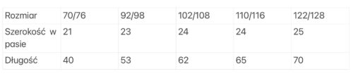 | Rozmiar | 70/76, 92/98, 102/108, 110/116, 122/128 |