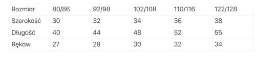 | Rozmiar | 80/86, 92/98, 102/108 |