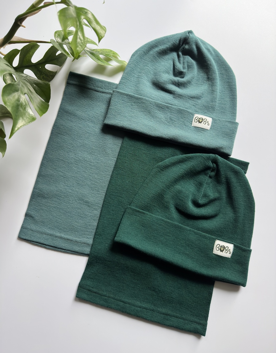 ZESTAW CZAPKA CIEMNO ZIELONA MERINO WOOL