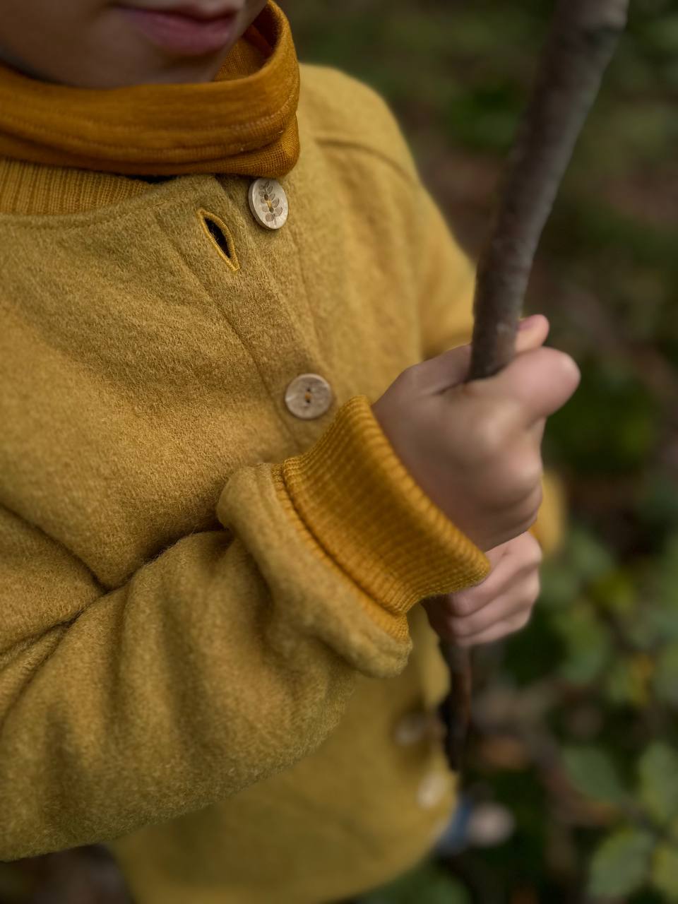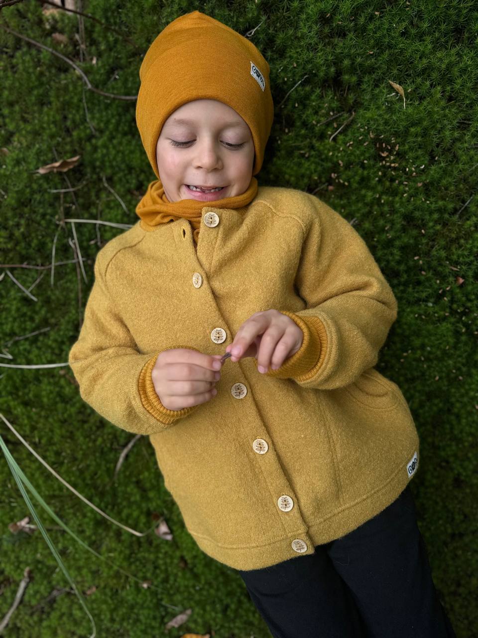 Kurtka jest wykonana z wełny parzonej o gramaturze 385 g/m wełna zapewnia przytulne ciepło, a jej naturalna oddychalność chroni dziecko przed przegrzaniem i poceniem.